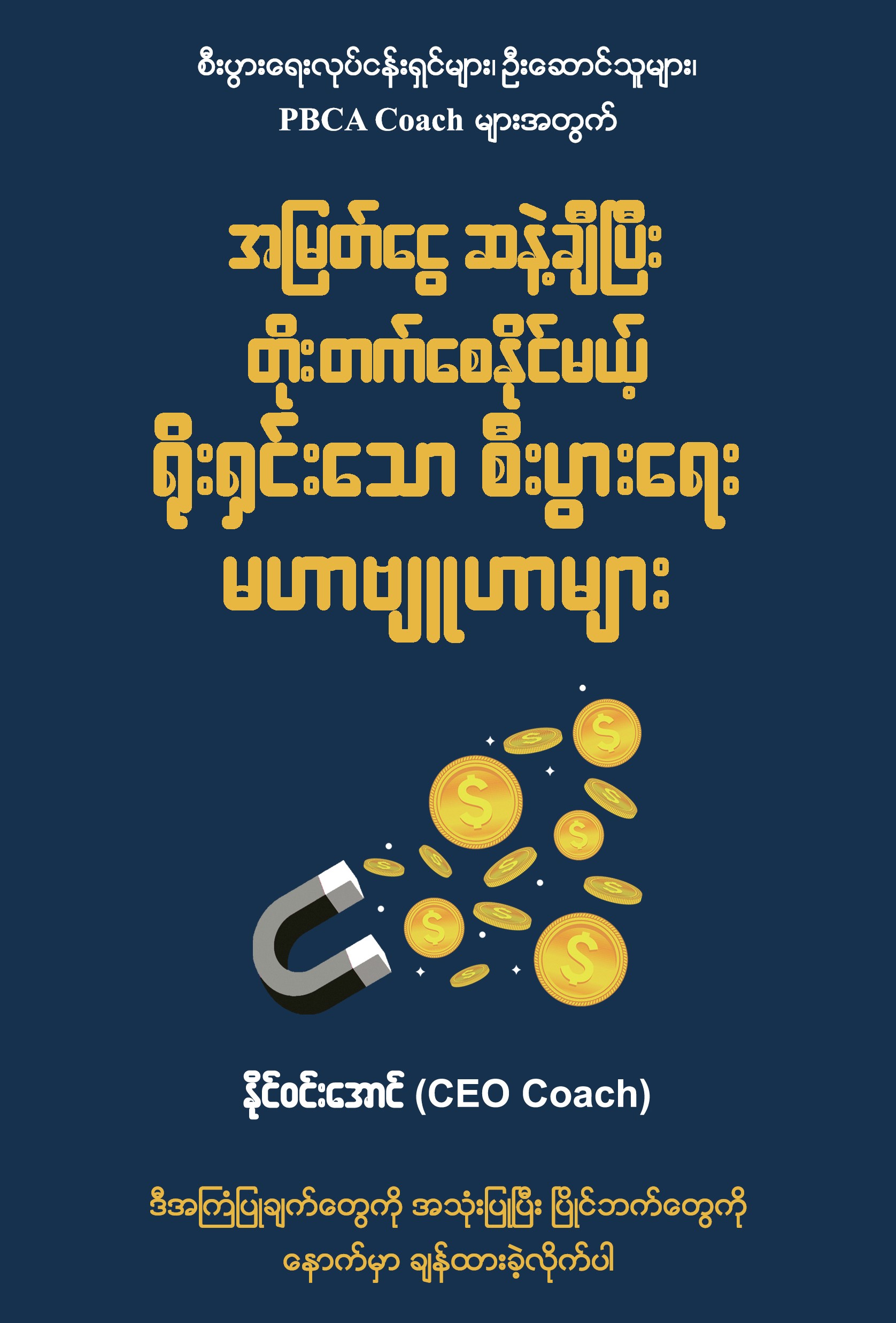လုပ်ငန်းရဲ့ Branding၊ Marketing နဲ့ Sales တိုးတက်ဖို့အတွက်လက်တွေ့အသုံးချနိုင်မယ့်စာအုပ်ပါ။ စီးပွားရေးလုပ်ငန်းရှင်တွေ၊ မားကက်တင်းနဲ့ အရောင်းပရော်ဖက်ရှင်နယ်တွေ၊ မားကက်တင်းနဲ့ အရောင်းကို လေ့လာနေသူတွ